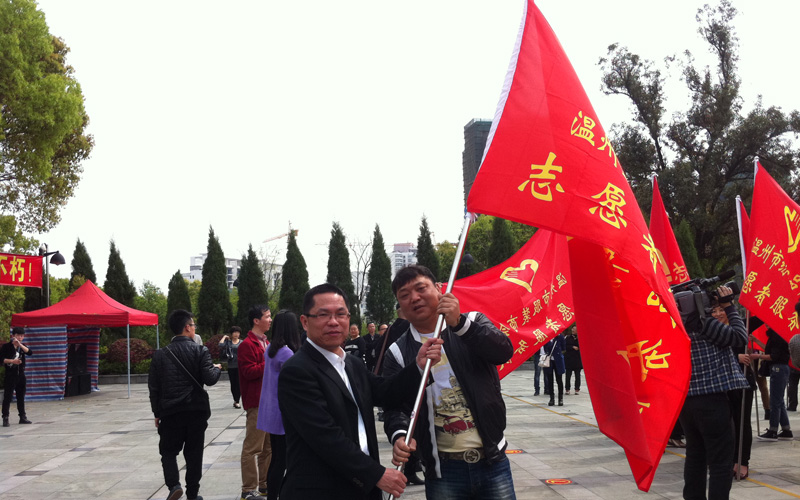 在授旗仪式上,我会志愿者服务队副队长孔繁敏从市工商联领导手中接过“志愿者服务队”队旗,执行会长、党支部书记任长宇代表全体志愿者队伍发言,他表示要秉承“奉献、友爱、互助、进步”的志愿者精神;坚持自愿参加、量力而行、讲求实效、持之以恒的原则;加强组织领导,确保活动有序有力推进,志愿者应以文明使者的名义,携起手来,奉献真情,进一步发扬革命先烈的崇高精神,继承先烈的革命传统,做好企业传承、努力创新发展企业、积极履行社会责任,为温州经济和社会发展做出志愿者应有的贡献。