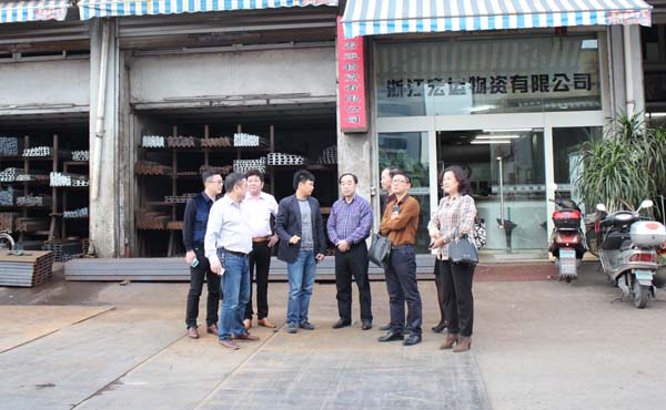 随后,郑主席在杨会长等陪同下考察了六虹钢材市场。