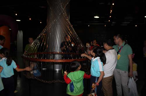 在基础科学展厅,模拟的电力、声音、光学等实验,让学生们大开眼界,手动激光琴很奇妙,手在空中拂动就能发出美妙的音乐,学生们随着音乐情不自禁舞动起来;在应用科学展厅,倾斜的小屋里铁球竟会从低处往高处滚动,让学生们惊奇不已;幻觉图形、立体成像、体感游戏系统等作品让学生们乐此不疲,哈哈镜也很受欢迎;在前沿科学展厅,虚拟现实仿真技术、智能化与机器人等展区,高科技成果让同学们赞不绝口。通过经典展品的演示,孩子们从直观、简单的现象展示领会了抽象、复杂的科学原理。