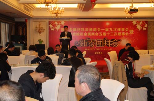 3月4日,温州金属材料流通商会一届九次、鹿城区金属商会五届十三次理事会议暨2016年新春团拜会在江南壹号酒店举行,商会全体理事会成员、商会主管单位市工商联、区工商联以及市、区有关部门领导100余人参加了会议。