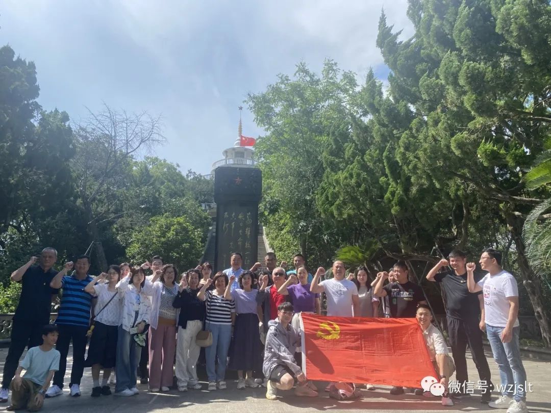 之后,大家拾级而上,来到一江山岛烈士陵园,在党支部书记白海的带领下,全体党员面对党旗重温了入党誓词,立志继承革命传统,弘扬不怕吃苦、自强不息的革命精神。