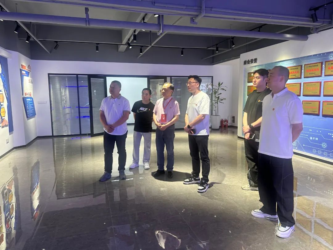 在商会党支部书记白海的引领下,彭松生书记一行首先参观了商会的党建展示厅。展示厅内,丰富的图片、详实的文字资料以及生动的多媒体展示,全方位呈现了我商会的发展历程、党建工作成果、党员风采以及在服务会员企业、推动行业发展等方面所发挥的重要作用。这些都彰显着我商会在党建工作上的高度重视与积极投入,也为此次交流活动营造了浓厚的红色氛围。