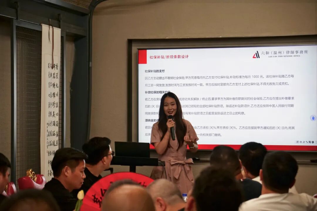 会议首先由商会常年法律顾问浙江六和律师事务所刘琼怡律师进行法律知识讲座。刘琼怡律师结合实际案例对《劳动争议司法解释二》的重点条款进行了解读,并为企业提供合规提示。她指出,2025年8月1日,《最高人民法院关于审理劳动争议案件适用法律问题的解释(二)》正式发布,于2025年9月1日起施行。《解释二》的众多规定对当前司法实践有重大调整和突破,对企业的合规管理提出了新的要求。她从社会保险、竞业限制、超龄劳动者待遇三个重点方面进行解读并为大家提出合规建议。